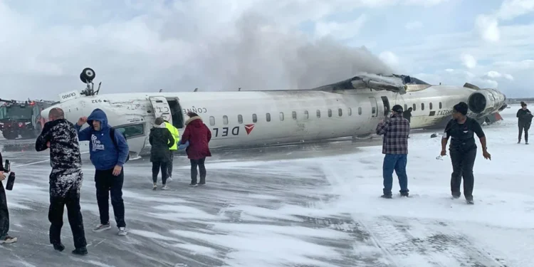 Το αεροσκάφος αναποδογύρισε στον διάδρομο, συμβάν που είχε αποτέλεσμα να τραυματιστούν 15 άνθρωποι, τρεις σοβαρά, σύμφωνα με τις αρχές.Η πτήση που εκτελούσε η Endeavor Air, θυγατρική της Delta, με αεροσκάφος τύπου Bombardier CRJ900 συνέδεε τη Μινεάπολη (Μινεσότα, ΗΠΑ) με τη μεγαλύτερη πόλη του Καναδά. Το ατύχημα έγινε περί τις 15:30 (τοπική ώρα), διευκρίνισε η Delta Airlines.