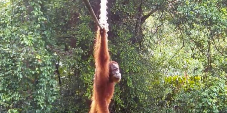 Ο ουρακοτάγκος της Σουμάτρας, που είναι απειλούμενος με εξαφάνιση, βιντεοσκοπήθηκε για πρώτη φορά να χρησιμοποιεί μια γέφυρα για να διασχίσει έναν δρόμο.