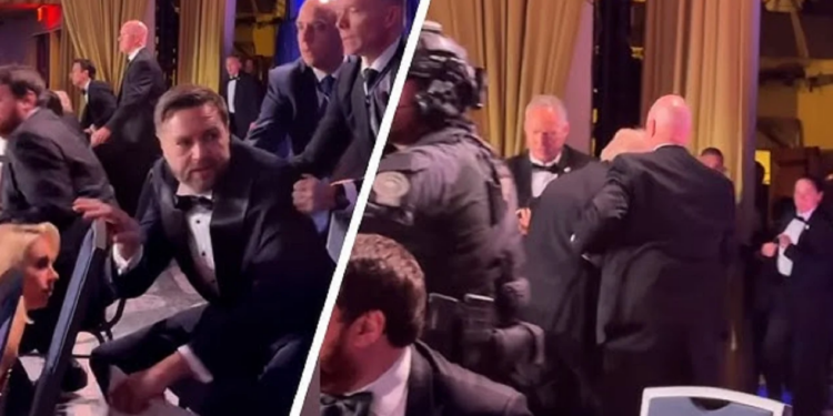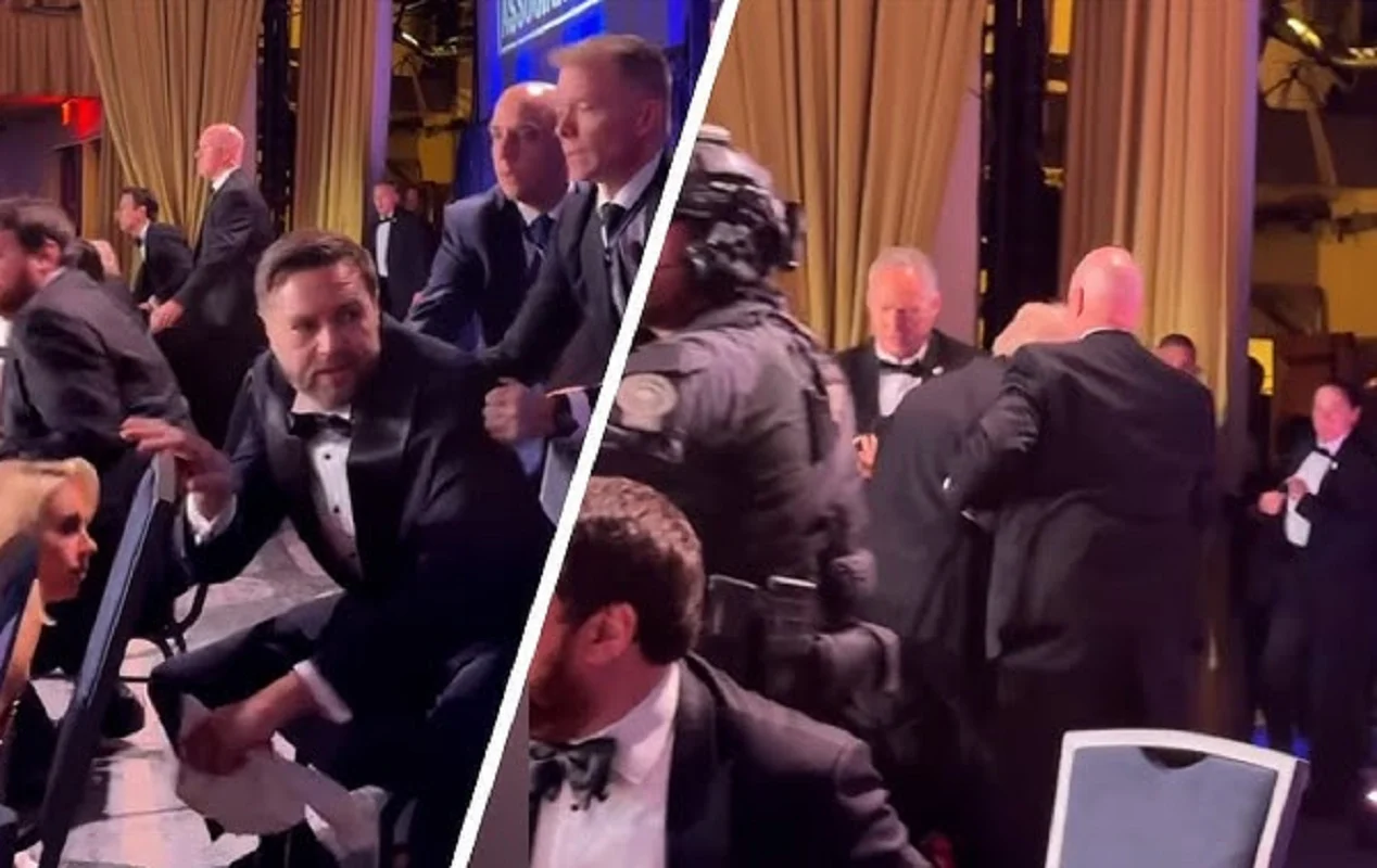 Εν τω μεταξύ, νέο βίντεο δείχνει την στιγμή λίγα λεπτά μετά τους πυροβολισμούς, που πράκτορες των υπηρεσιών ασφαλείας μπαίνουν στην αίθουσα και φυγαδεύουν εσπευσμένα τον Αντιπρόεδρο των ΗΠΑ, με τις συζύγους τους. Η λεπτομέρεια είναι πως πρώτα απομακρύνεται ο Βανς και στη συνέχεια ο Τραμπ, ο οποίος εν τω μεταξύ, είχε κρυφτεί κάτω από το τραπέζι.