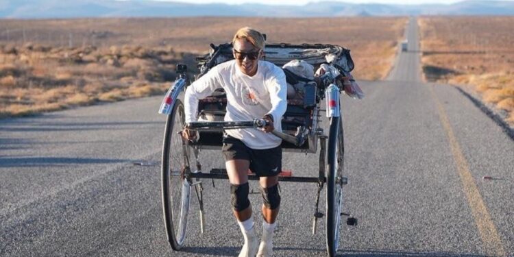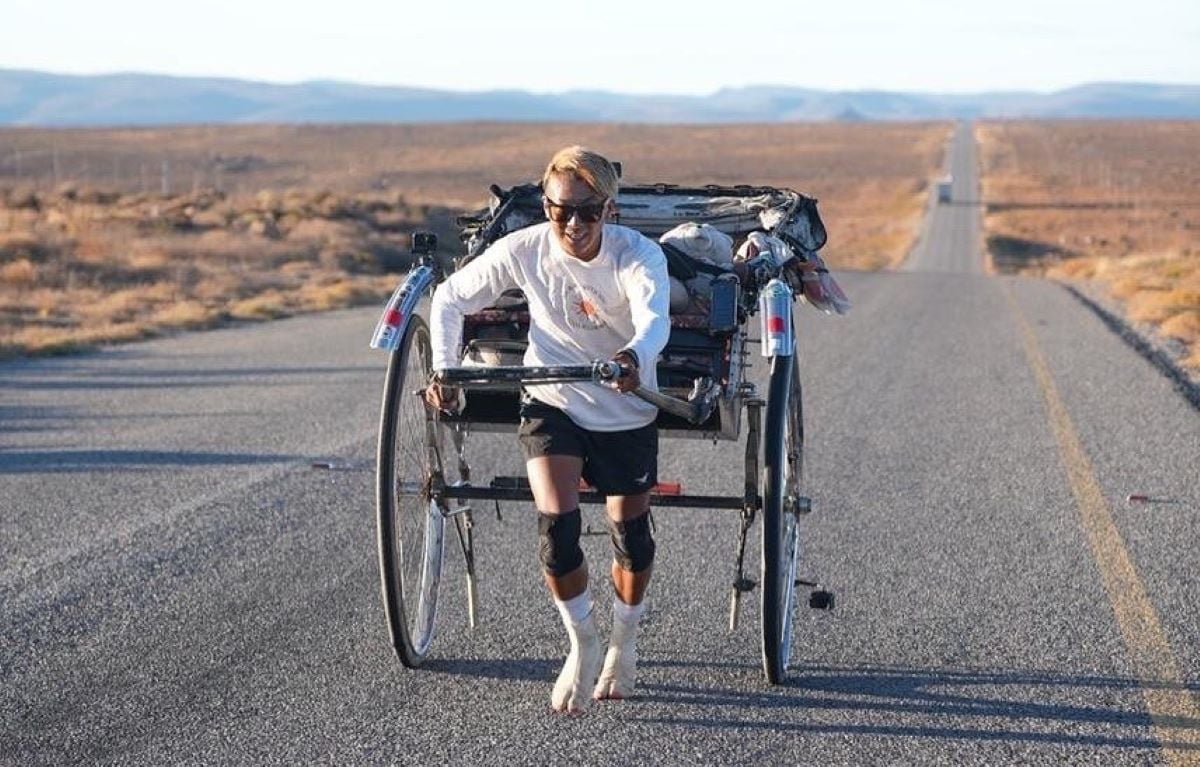 Ένας 34χρονος Ιάπωνας έφτασε σήμερα το Κέιπ Τάουν αφού κάλυψε, τρέχοντας και σέρνοντας ένα ρίκσο (καλάθι μεταφοράς), μια απόσταση 6.000 χιλιομέτρων, από την Κένυα μέχρι τη Νότια Αφρική.