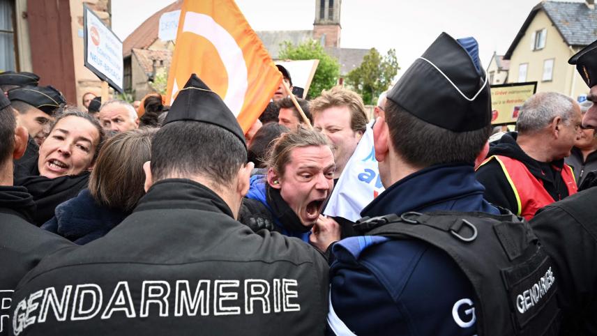 O Μακρόν επιχείρησε να περπατήσει στην πόλη Sélestat της Αλσατίας, αλλά οι αποδοκιμασίες ήταν έντονες. Για περισσότερο από δέκα λεπτά ο κόσμος φώναζε “Μακρόν παραιτήσου”. “Συνεχίζω τον αγώνα” είπε απευθυνόμενος σε ορισμένους πολίτες που είχαν επιλεγεί από το επιτελείο του για να τον χαιρετίσουν. Ο Μακρόν αντέδρασε στον θόρυβο που έκαναν οι συγκεντρωμένοι κατά την επίσκεψή του σε ένα εργοστάσιο, στην Αλσατία, σχολιάζοντας: «Οι κατσαρόλες δεν θα βοηθήσουν τη Γαλλία να προοδεύσει».