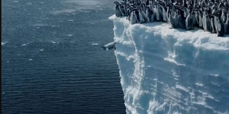 Είναι ατρόμητοι! Δεκάδες μωρά πιγκουίνοι έπεσαν με γενναιότητα από έναν τεράστιο βράχο ύψους 15 μέτρων για να κολυμπήσουν για πρώτη φορά στα παγωμένα νερά της Ανταρκτικής, δείχνουν μοναδικά νέα πλάνα.