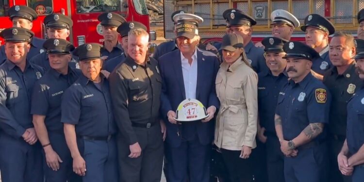Ο κ. Τραμπ κατόπιν επιθεώρησε τις ζημιές των πυρκαγιών, που άφησαν πίσω κάπου τριάντα νεκρούς σε προάστια του Λος Άντζελες, με βάση τον πιο πρόσφατο επίσημο απολογισμό. Ακόμη, συναντήθηκε με πληγέντες.