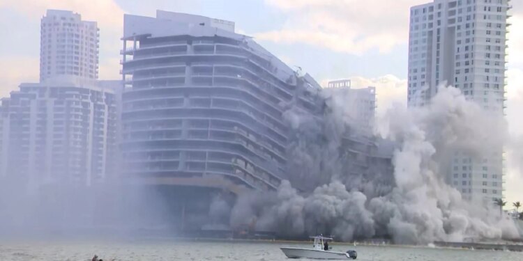 Το 23όροφο κτίριο, που λειτουργούσε για περίπου 25 χρόνια, κατέρρευσε μετά από σειρά εκρήξεων γύρω στις 08:30 το πρωί, σε αυτό που χαρακτηρίστηκε η μεγαλύτερη κατεδάφιση στο Μαϊάμι εδώ και πάνω από μία δεκαετία.