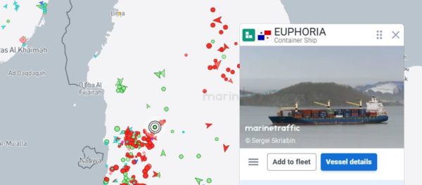 Επιπλέον, σύμφωνα με τη live μετάδοση της αντίστοιχης πλατφόρμας Marine Traffic, το «Euphoria» έχει πλησιάσει τις ακτές των ΗΑΕ.