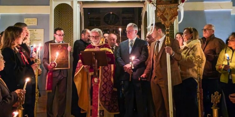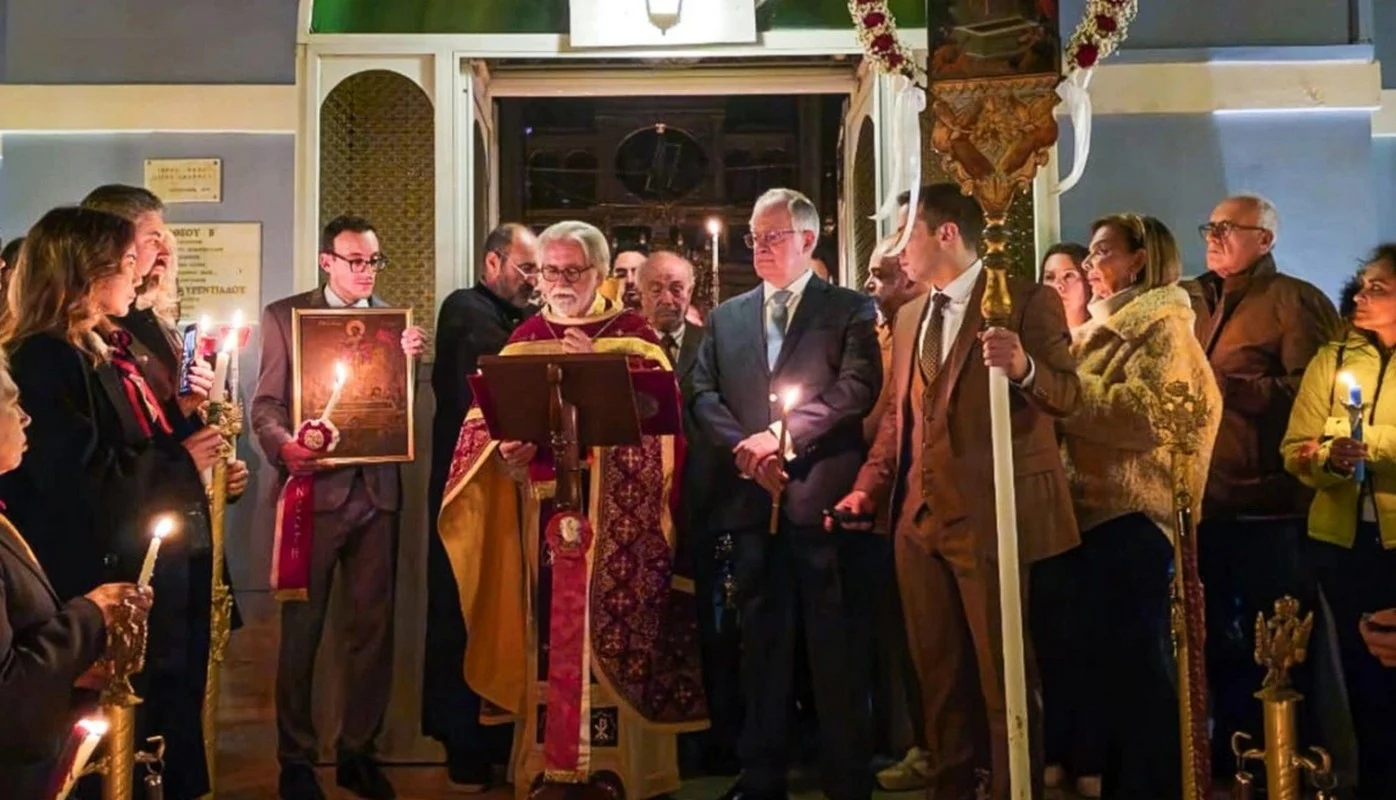 Ο Πρόεδρος της Δημοκρατίας Κωνσταντίνος Τασούλας συνοδευόμενος από τη σύζυγό του Φανή Σταθοπούλου και την κόρη τους Μάγδα, παρακολούθησε την Ακολουθία της Αναστάσεως στον Ι. Ν. Αγίου Ιωάννη Ποσειδωνίας Σύρου.
