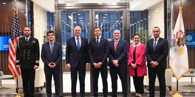 Ο Έλληνας Υπουργός αναφέρθηκε και στην ισχυρή στρατηγική σχέση που έχει αναπτύξει η Ελλάδα με τις Ηνωμένες Πολιτείες, τόσο επί της προηγούμενης Προεδρίας Τραμπ, όσο και επί της Προεδρίας Μπάιντεν. «Η στρατηγική μας σχέση με τις ΗΠΑ έφτασε σε πρωτοφανώς υψηλό επίπεδο τα τελευταία χρόνια. Τον Οκτώβριο του 2019, υπό την προεδρία Τραμπ υπέγραψα την πρώτη τροποποίηση της Συμφωνίας Αμοιβαίας Αμυντικής Συνεργασίας (MDCA), με τον Μάικ Πομπέο. Το 2021, υπέγραψα τη δεύτερη τροποποίηση, με τον Άντονι Μπλίνκεν. Η αναγνώριση αυτή, και από τα δύο κόμματα, υπογραμμίζει το γεγονός ότι η Ελλάδα είναι ένας πραγματικός σύμμαχος, ένας πυλώνας σταθερότητας και ασφάλειας στην Ανατολική Μεσόγειο – και υπερασπίζεται με συνέπεια το Διεθνές Δίκαιο και τις αρχές του Διεθνούς Δικαίου της Θάλασσας» υπογράμμισε.