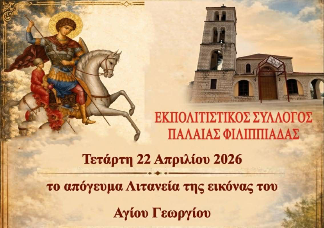Ο Δήμος Ζηρού και ο Εκπολιτιστικός Σύλλογος Παλαιάς Φιλιππιάδας σας προσκαλούν σε δύο ξεχωριστές εκδηλώσεις με αφορμή τη γιορτή του Αγίου Γεωργίου, γεμάτες παράδοση, πίστη και πολιτισμό.