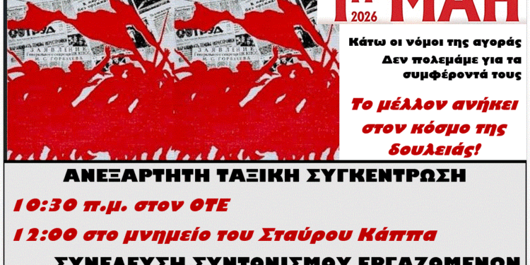 ανεξάρτητη πρωτομαγιάτικη ταξική συγκέντρωση 10:30 π.μ στον ΟΤΕ.