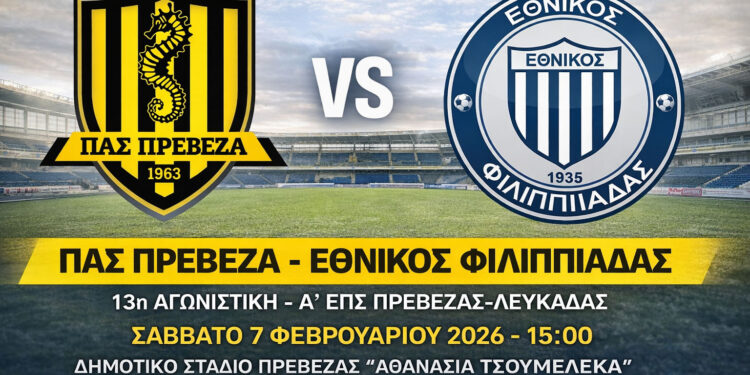 Ο ΠΑΣ Πρέβεζα υποδέχεται τον Εθνικό Φιλιππιάδας στο Δημοτικό Στάδιο Πρέβεζας «Αθανασία Τσουμελέκα», στο πλαίσιο της 13ης αγωνιστικής του πρωταθλήματος της Α’ Κατηγορίας ΕΠΣ Πρέβεζας–Λευκάδας, σε ένα παιχνίδι με ξεχωριστή βαθμολογική και αγωνιστική σημασία.