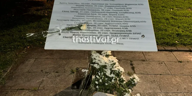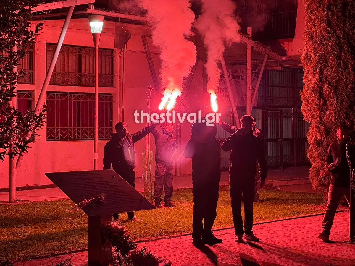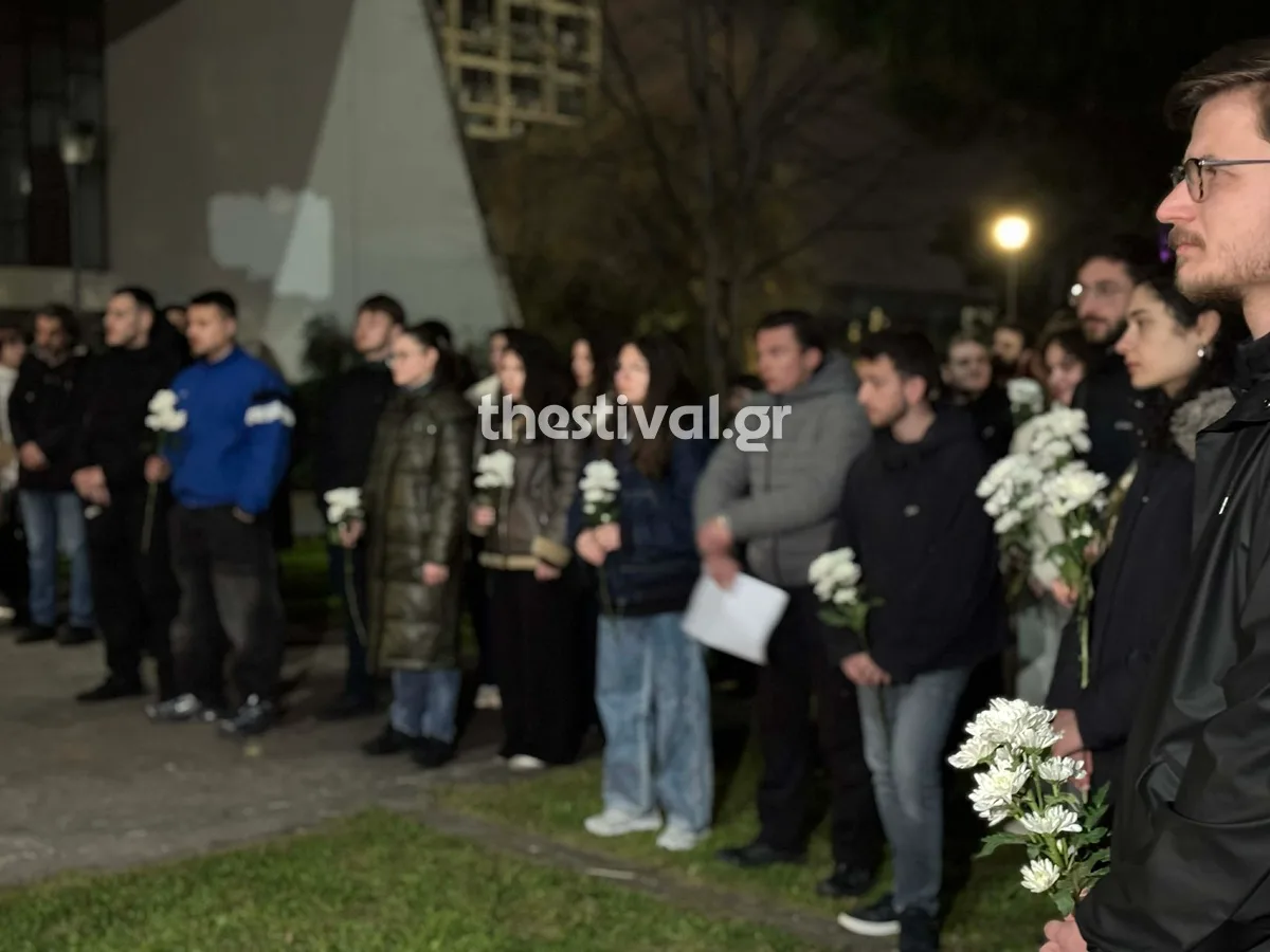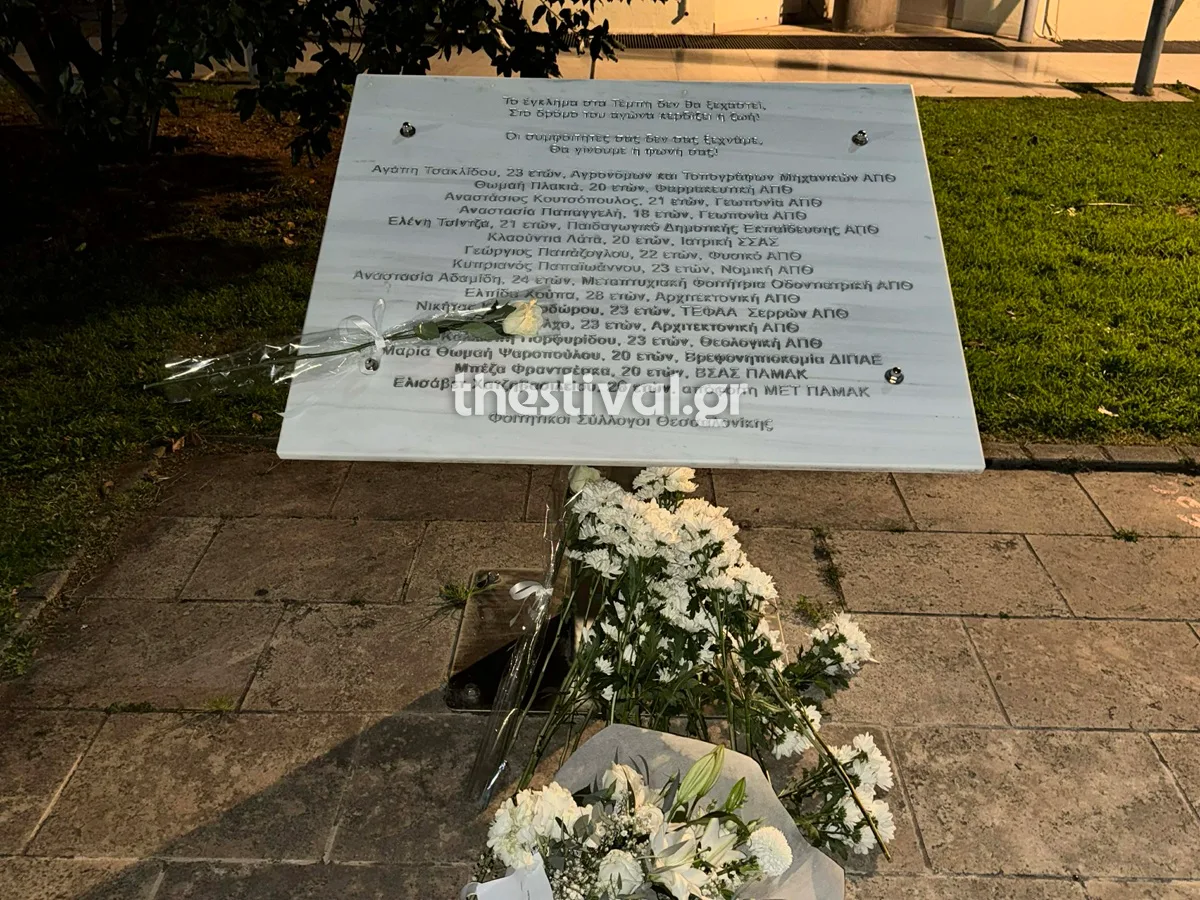 Το βράδυ της Παρασκευής, λίγες ώρες πριν συμπληρωθούν τρία χρόνια από τη σιδηροδρομική τραγωδία, φοιτητές συγκεντρώθηκαν στο μνημείο που έχει στηθεί εντός της Πανεπιστημιούπολης, στα γρασίδια της φιλοσοφικής, στη μνήμη των 16 φοιτητών (13 του ΑΠΘ και τριών άλλων πανεπιστημίων) που χάθηκαν στην τραγωδία των Τεμπών.