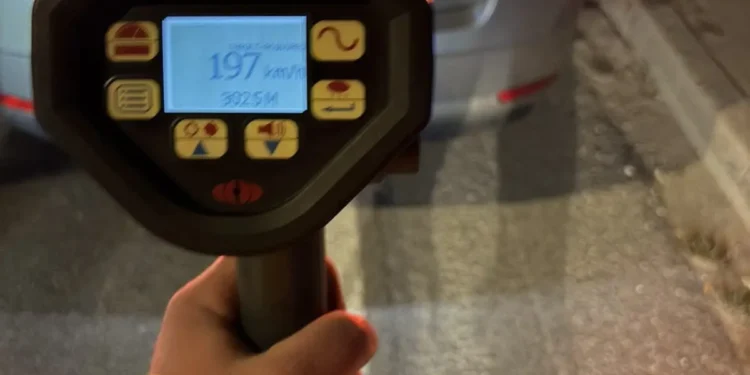 Συγκεκριμένα διαπιστώθηκε μέσω συσκευής radar ότι ο 22χρονος κινούνταν με 197 χλμ/ώρα αντί του ανωτάτου επιτρεπομένου ορίου των 100 χλμ/ώρα υπερβαίνοντας το ανώτατο επιτρεπόμενο όριο ταχύτητας κατά 97 χλμ/ώρα, με αποτέλεσμα την πρόκληση κινδύνου για τους λοιπούς χρήστες της οδού.