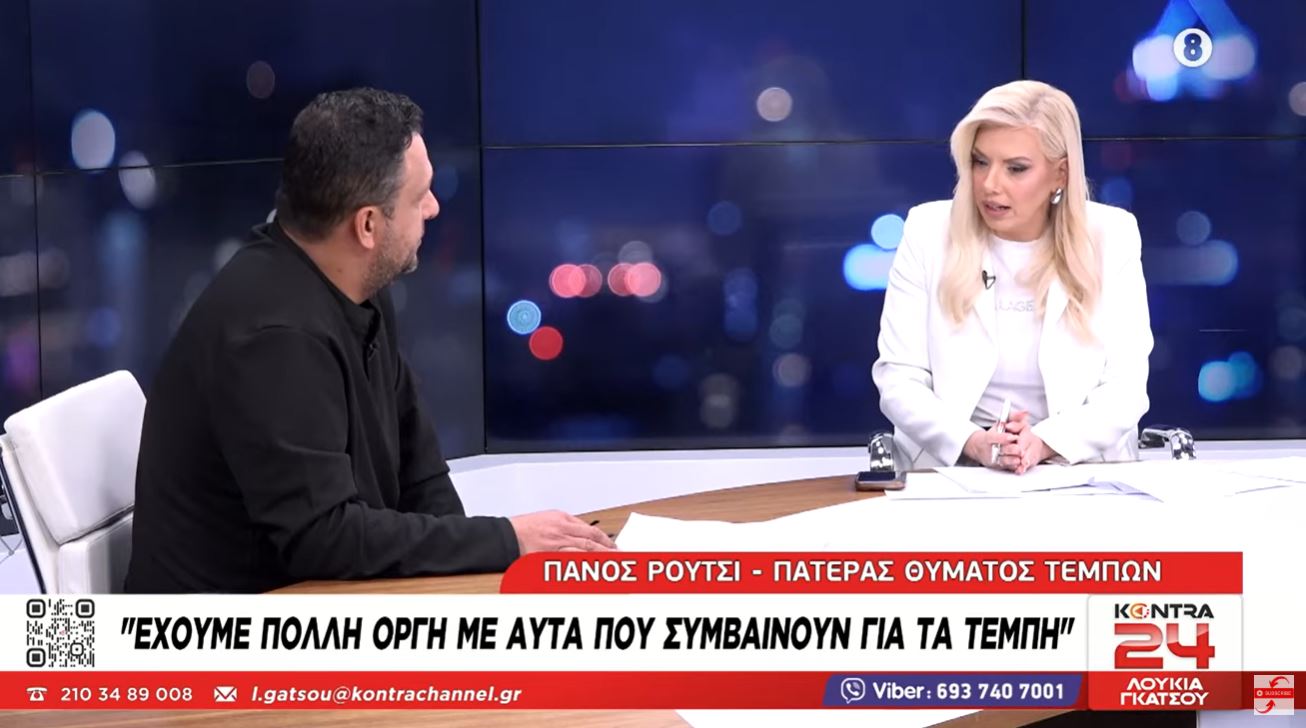 Στο στούντιο του Kontra24 και την εκπομπή της Λουκίας Γκάτσου βρέθηκε ο Πάνος Ρούτσι, πατέρας θύματος της τραγωδίας των Τεμπών.