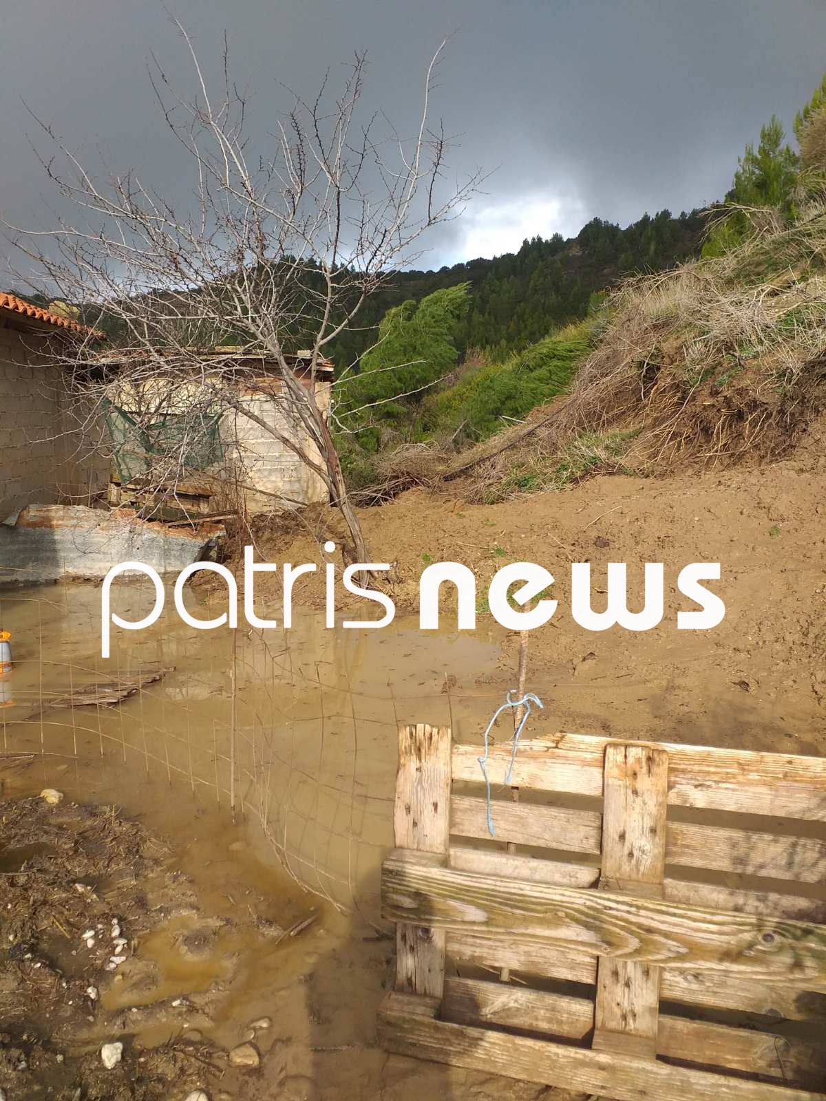 Ο μεγάλος όγκος νερού που έπεσε στην περιοχή, έφερε την κατολίσθηση, με τις εγκαταστάσεις που διαθέτει ο κτηνοτρόφος να παρασέρνονται και να καταπλακώνονται από χώματα και νερό.