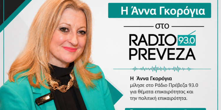 Σε μια ουσιαστική και ήπια πολιτική τοποθέτηση προχώρησε η Άννα Γκορόγια, πρώην μέλος της Νομαρχιακής Επιτροπής ΠΑΣΟΚ και συντονίστρια στο νομό Πρέβεζας, μιλώντας στο Ράδιο Πρέβεζα 93 και στην εκπομπή «ΕΝΗΜΕΡΩΣΗ» με τον Γιάννη Βασιλειάδη, το απόγευμα της Δευτέρας.